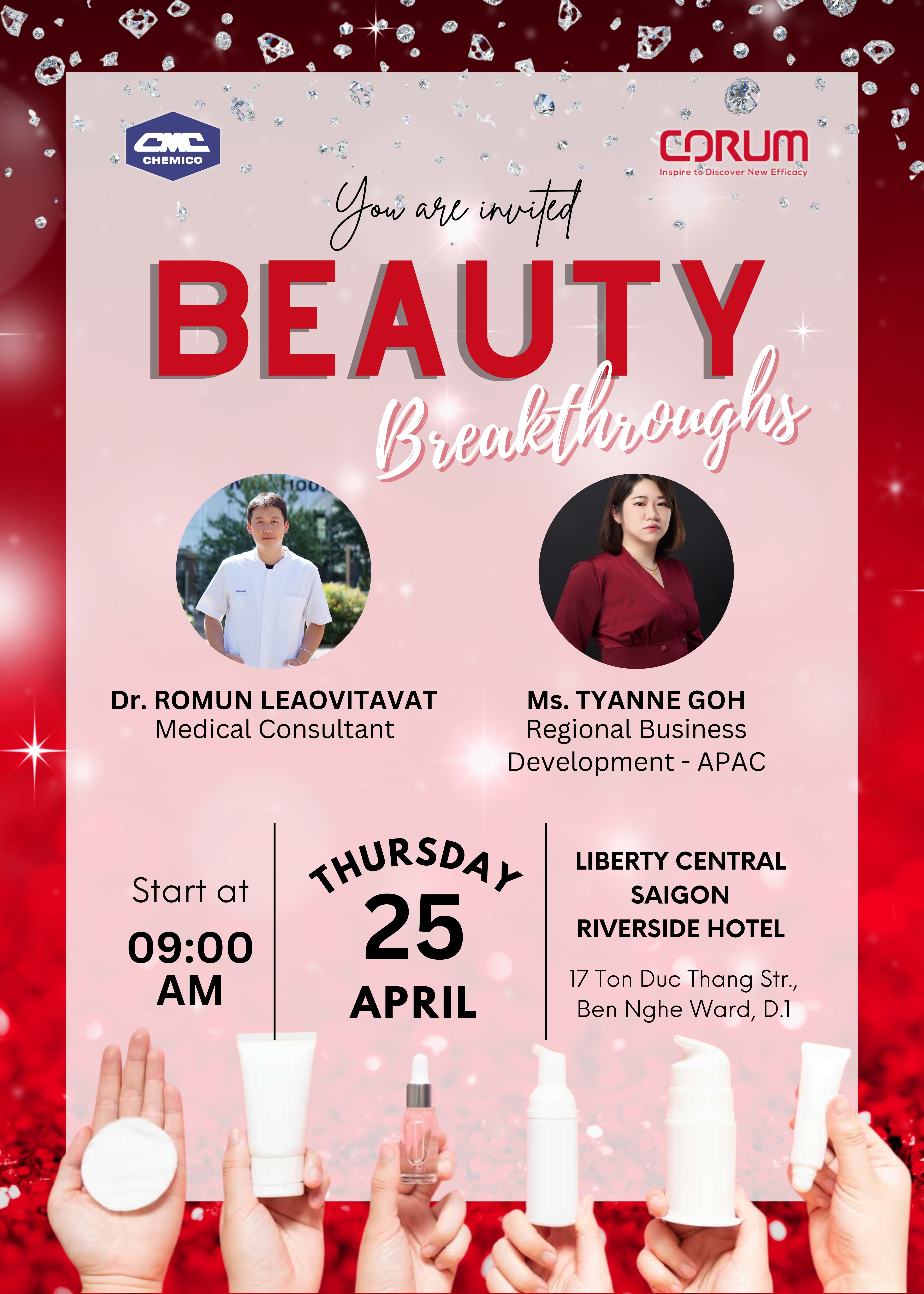 Corum Inc., Taiwan in collaboration with Chemico Vietnam Co., Ltd. held a big Seminar 2024 at Liberty Central Sài Gòn Riverside Hotel, District 1 on April 25th, 2024. The topic was “BEAUTY BREAKTHROUGHS”. The seminar was all about the advanced Skincare ingredients for whitening, acne and anti-aging products from Corum Inc.....