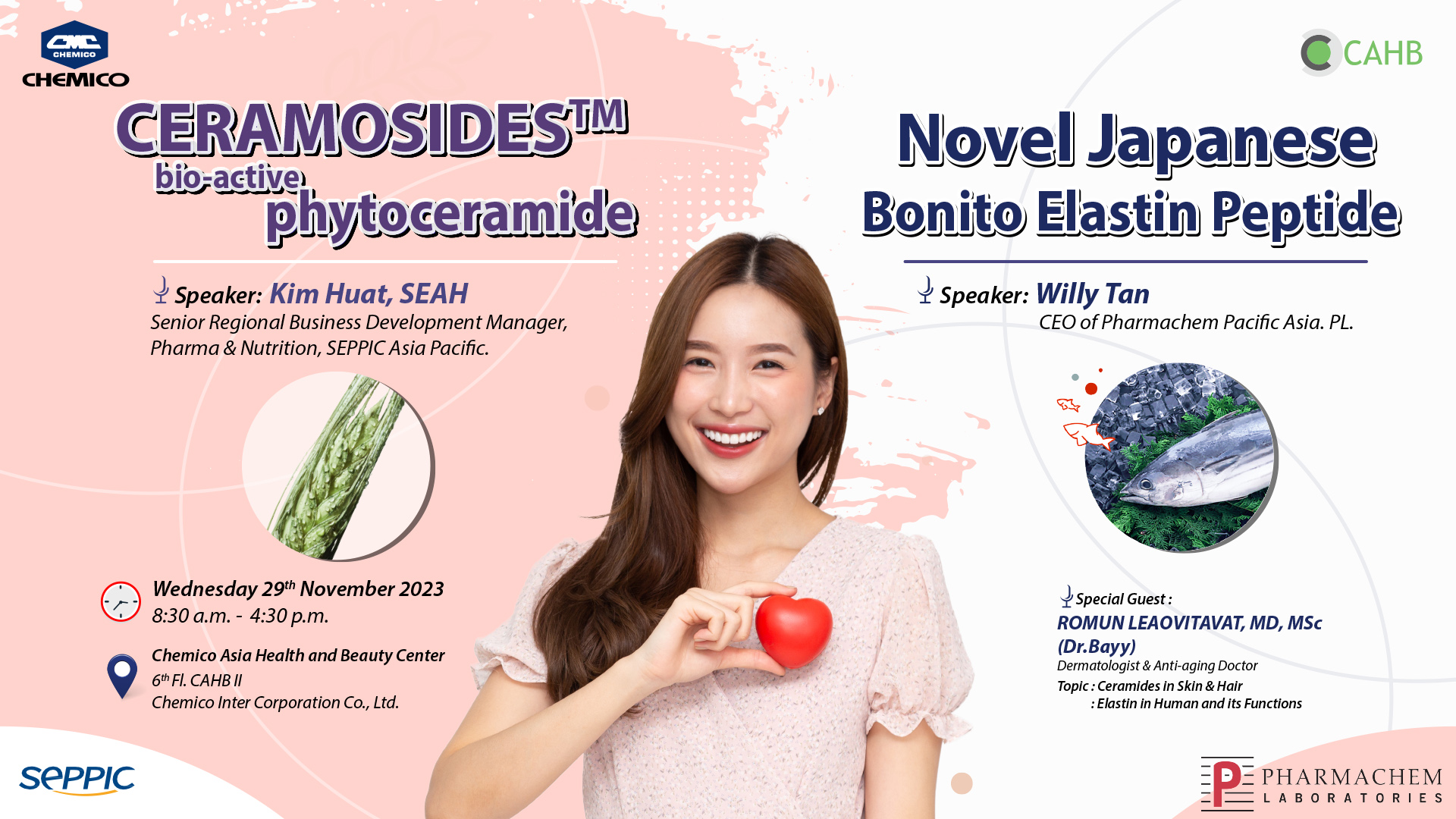 Seppic S.A., France and Pharmachem Pacific Asia. Pte. Ltd., Singapore in collaboration with Chemico Inter Corporation Co., Ltd., Thailand organized a seminar entitled “Novel Japanese Bonito Elastin Peptide with French CERAMOSIDES™ Bio-Active Phytoceramide” on November 29th, 2023......
