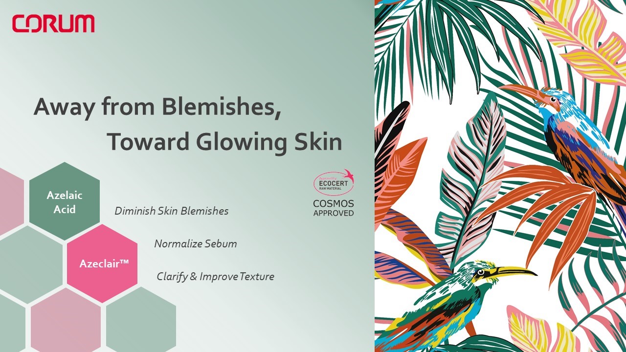 Corum Inc., Taiwan in collaboration with Chemico Philippines Inc. held a webinar entitled “Away from Blemishes, Towards Glowing Skin” on June 23, 2020. The webinar introduced Azeclair as a great anti-acne and oil control ingredient.