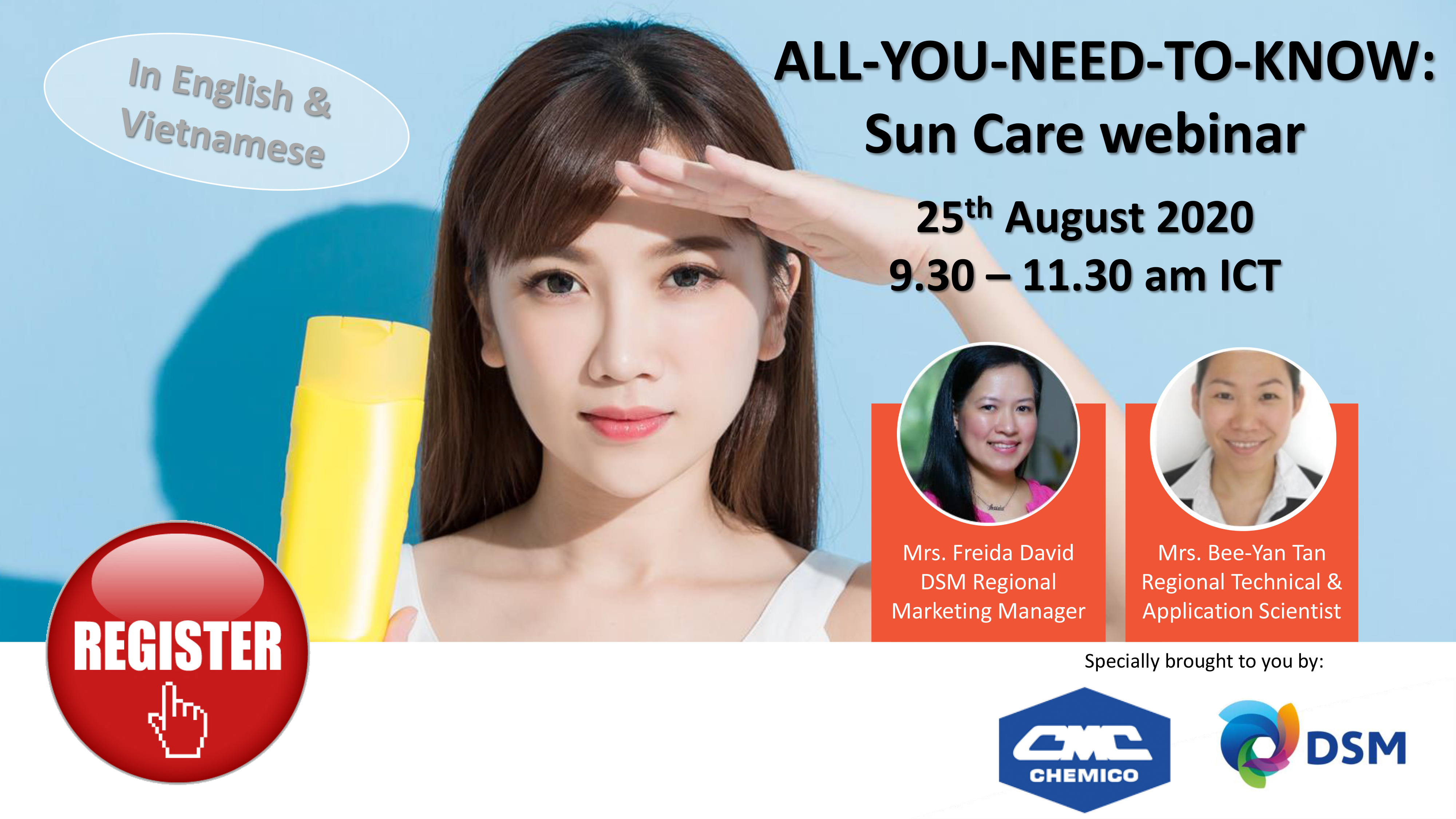 DSM Nutritional Products joined hand with Chemico Vietnam Co., Ltd. to hold a very practical yet joyful “ All-You-Need-To-Know: Sun Care Webinar” on August 25th, 2020. The webinar did not only share the specific actives in sun care products, but also took this chance to present an advanced software for measuring the SPF index, named “DSM Sunscreen Optimizer 2.0”. The software helps to customize the sunscreen formulation based on the actual requirement.