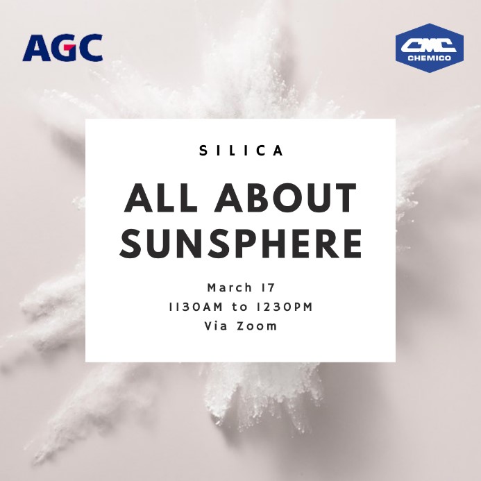 AGC Si-Tech in collaboration with Chemico Asia Pacific held webinar via Zoom on March 17, 2021 under the topic “ALL ABOUT SUNSPHERE”. The webinar included information about Japanese cosmetics containing silica powder, introducing Sunsphere series and presenting new findings on Sunsphere properties such as mattifying effects, SPF boosting capability, long lasting effects (in liquid foundation formulations) and as well as Sunsphere as alternative for plastic microbeads. The webinar ended with Q&A session with customers.