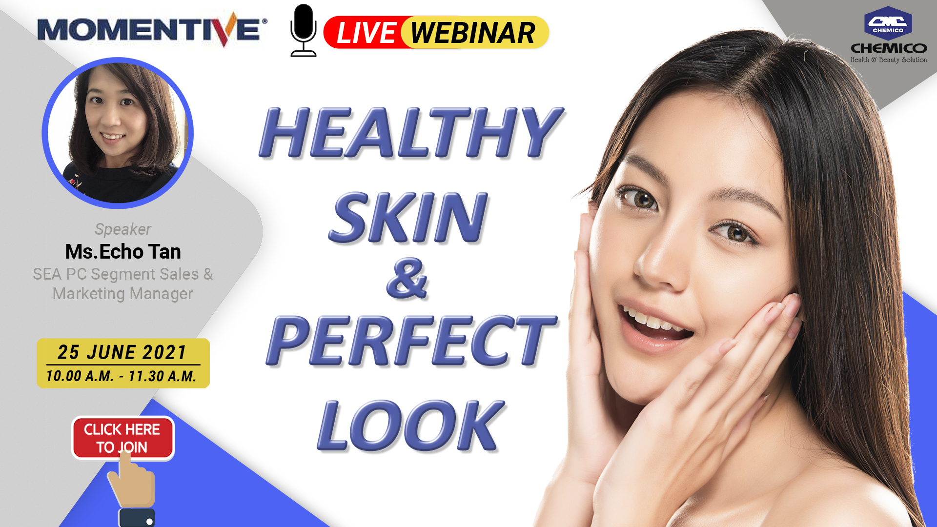 Momentive Performance Materials Inc. in collaboration with Chemico Inter Corporation Co., Ltd. held a webinar entitled "Healthy Skin & Perfect Look" on June 25th, 2021. The webinar presented 3 skin care trends which are Glowing skin, Healthy aging and Skin moisturization. The related ingredients and innovation were introduced to customers as well.