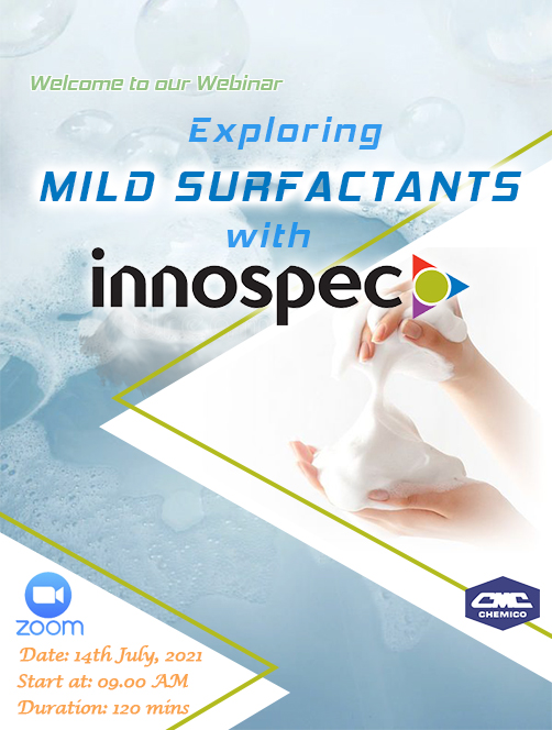 The trend of Sulfate-free or SLES-free in personal care products brings about new opportunities as well as challenges to all manufacturers. Understanding this, Chemico Vietnam Co., Ltd. in collaboration with one of the oldest and reputable supplier from USA – Innospec Inc. held an interesting webinar on July 14, 2021 with the topic “Exploring Mild Surfactants with Innospec”. The key surfactants were introduced to the customers to provide easy and productive choices for their product upgrade.