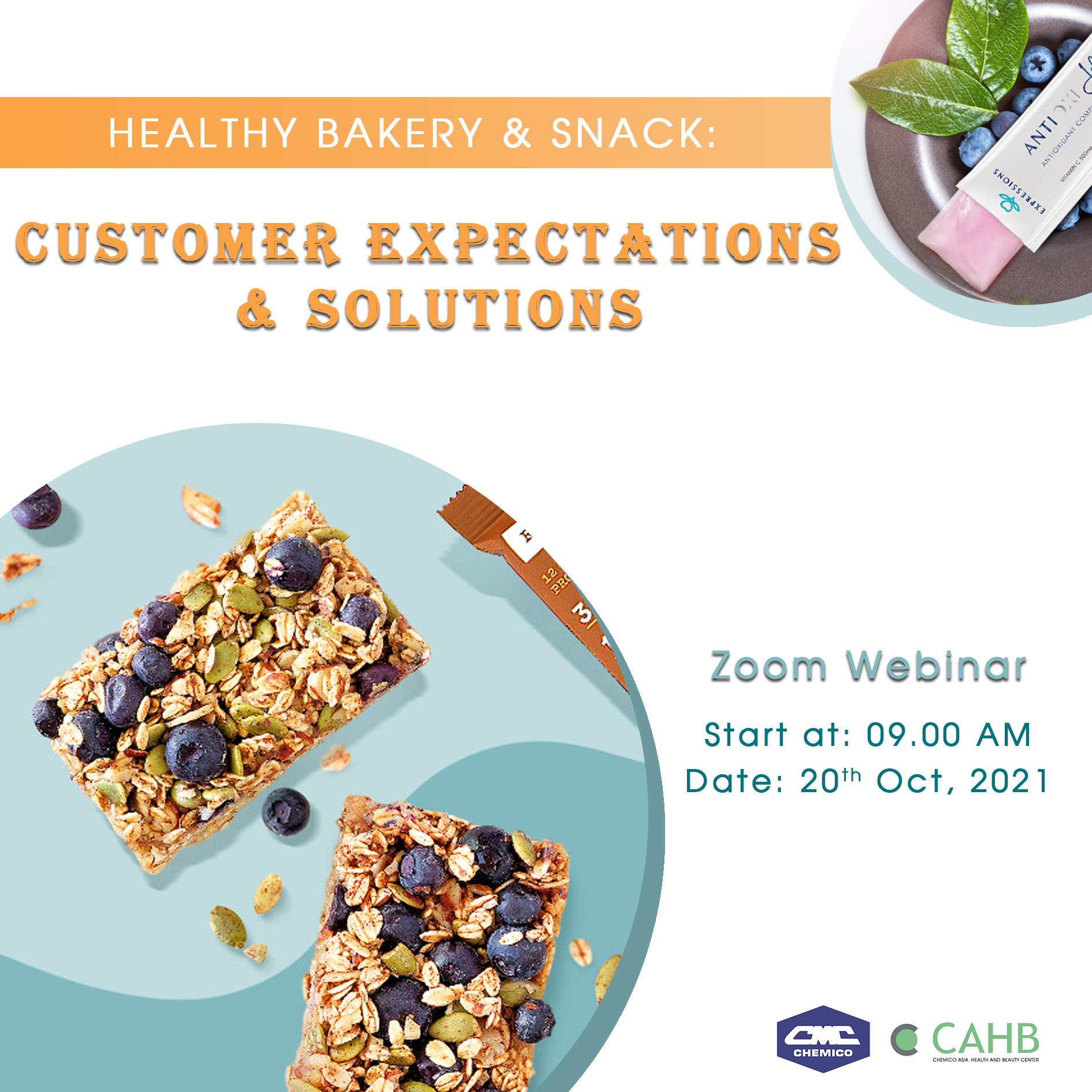 Nowadays, people more and more concern about their daily diet, especially the nutrition value. Therefore, Chemico Vietnam Co., Ltd. and CAHB team organized the first interesting Food webinar with the title “Healthy Bakery and Snack: Customer Expectations and Solutions” on October 20th, 2021. During the webinar, we had a chance to share marketing information, the updated trends of healthy bakery & snack as well as the advanced ingredients from our famous suppliers around the world. Moreover, we also shared some bakery formulations developed by CAHB center.