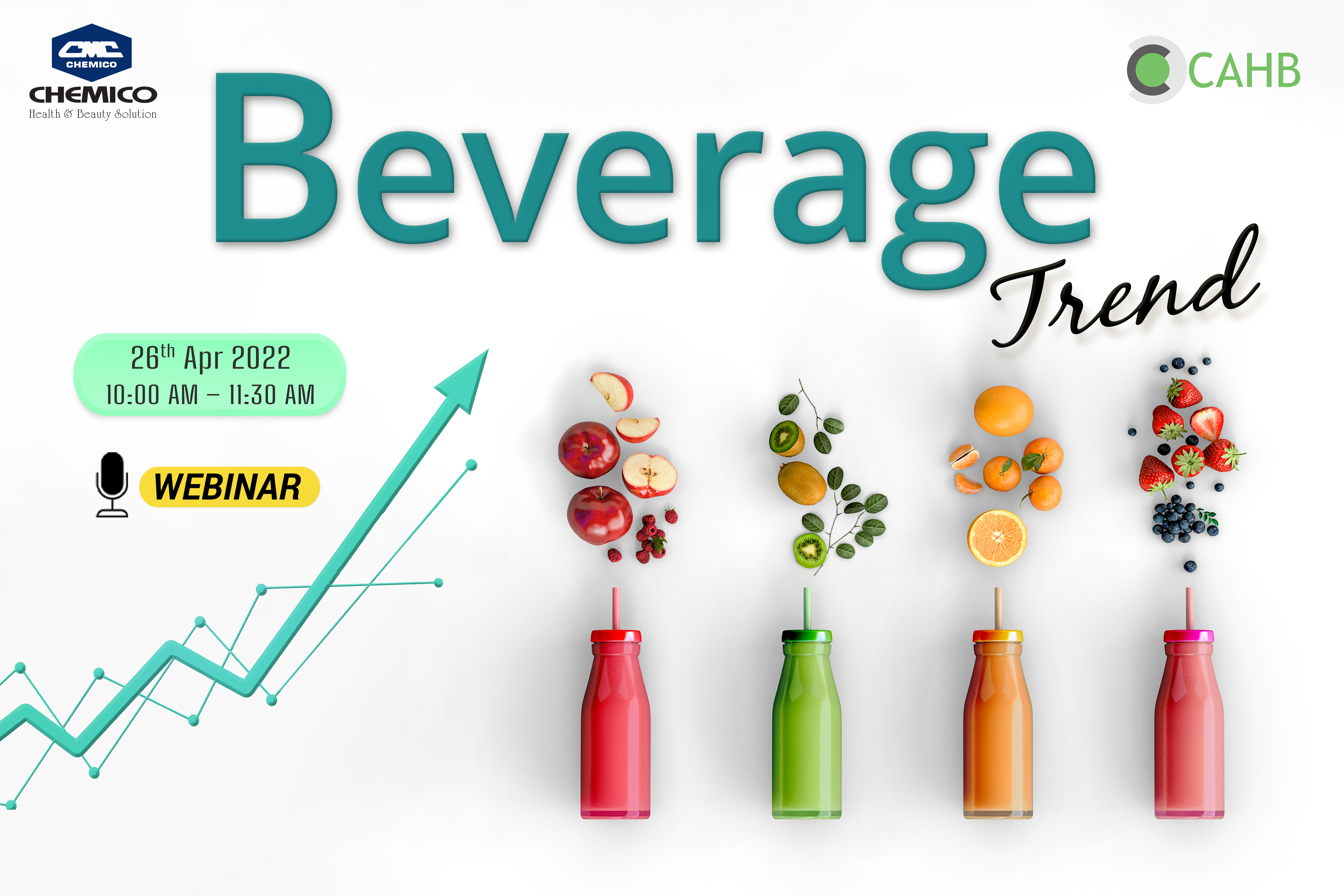 Chemico Asia Health and Beauty (CAHB) Center, a member of Chemico Group, Thailand organized a webinar entitled “Beverage Trend” on April 26th, 2022. Beverage trend, market information and global market products as well as the related ingredients from Chemico were provided.