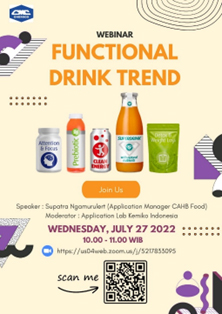Kemiko Indonesia, Jakarta Indonesia, Food division in collaboration with Chemico Asia Health and Beauty (CAHB) Center – Food Application, Thailand held a webinar entitled "Functional Drink Trend" on July 27th, 2022. The webinar presented functional food global market trend, especially product trend in Indonesia. Formulations related to the trends: beauty food & beverages, weight loss management and breastfeeding were shared on this webinar as well.