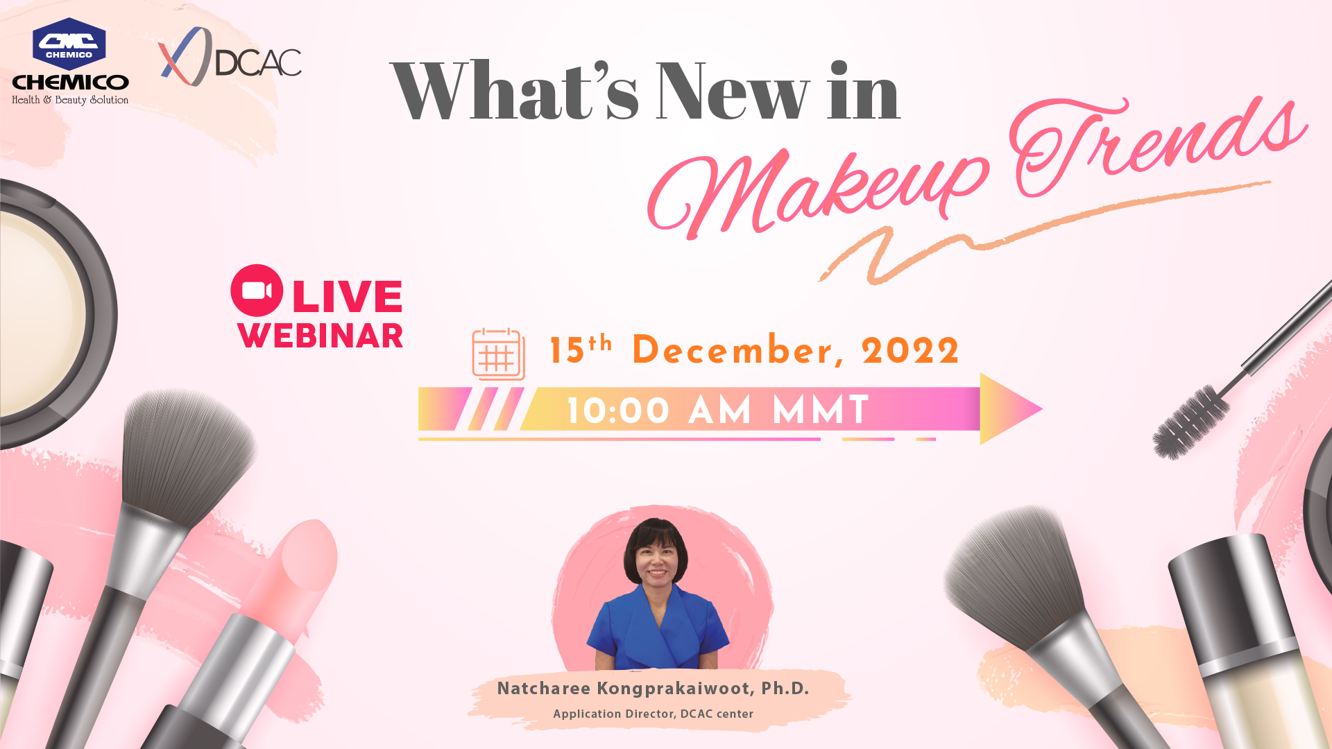 Chemico Myanmar Co.,Ltd. in collaboration with Daito Chemico Asia Color Cosmetics (DCAC) Center organized an interesting webinar on December 15th, 2022 under the topic “ What’s New in Make Up Trend.” We presented Make Up trends and information of raw materials related to the trends. Attendees were interesting and participated in urvey and sample request section. And, we will distribute samples and documents to all requested customers after the webinar.