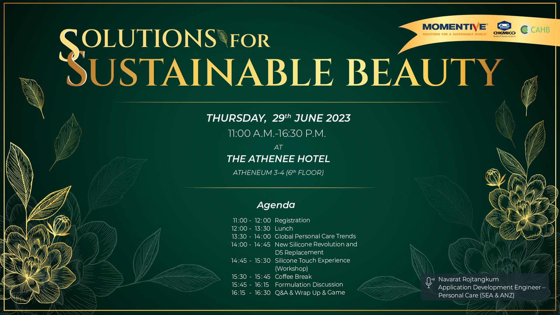 Momentive Performance Materials Inc., in collaboration with Chemico Inter Corporation Co., Ltd., held a seminar entitled "Solutions for Sustainable Beauty" on June 29th, 2023 at The Athenee Hotel Bangkok, Thailand. The seminar introduced Global beauty trends and provided technical knowledge on Sustainable ingredients related to the trends. Momentive Star products were also introduced during the seminar. Furthermore, the customers had the opportunity to try the sensory properties of ingredients and formulations as well as evaluated performances of products.