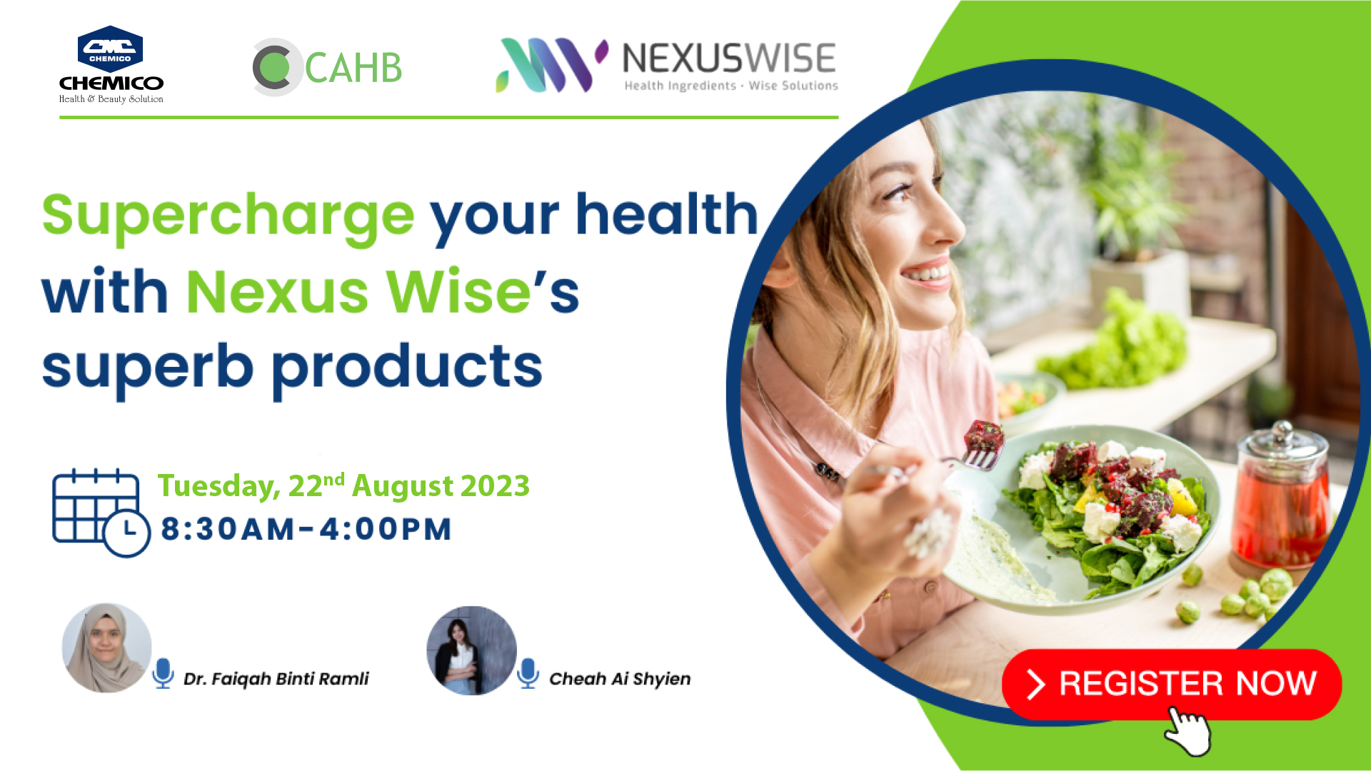 Nexus Wise Sdn. Bhd., Malaysia in collaboration with Chemico Inter Corporation Co., Ltd., Thailand organized a seminar entitled “Supercharge Your Health with Nexus Wise’s Superb Products” on August 22nd, 2023 at Chemico Asia Health and Beauty (CAHB) center, Thailand. The seminar provided Nexus Wise introduction, product information (CordiPro™, Brossica™, PureBG™, plant-based milk powder and Superseries), clinical studies, global market, market products and formulations as well as tasters. The information is very useful in the development of new products in the field of dietary supplements (hard capsule, tablet, powder shot, jelly strip, jelly drink, gummy jelly), beverages and milk products.